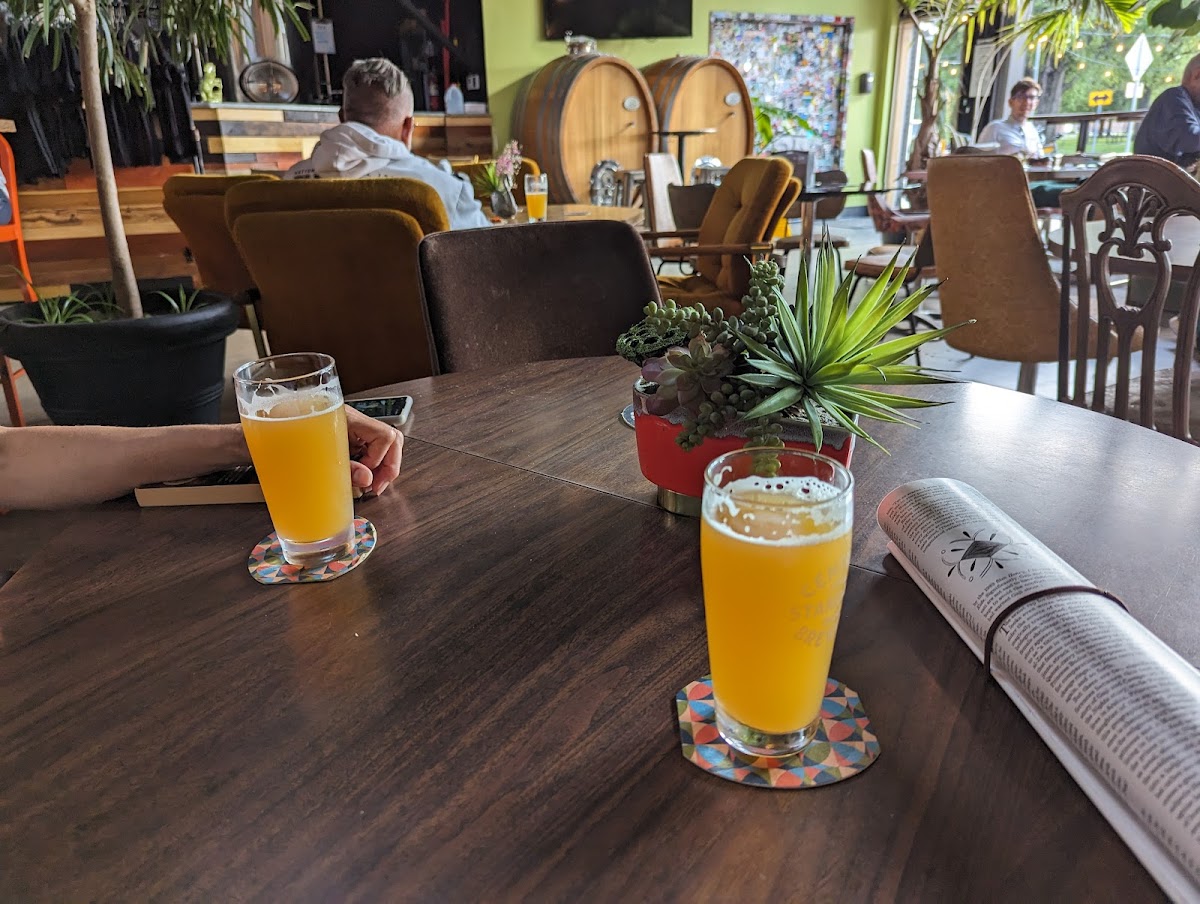 Very chill, laid back vibes. I loved the abundance of outdoor seating and how they had a large garage door that merged the indoors and outdoors. They had some really good locally sourced pizza and bomb brews. They specialize in sours and IPAs, which is super cool.